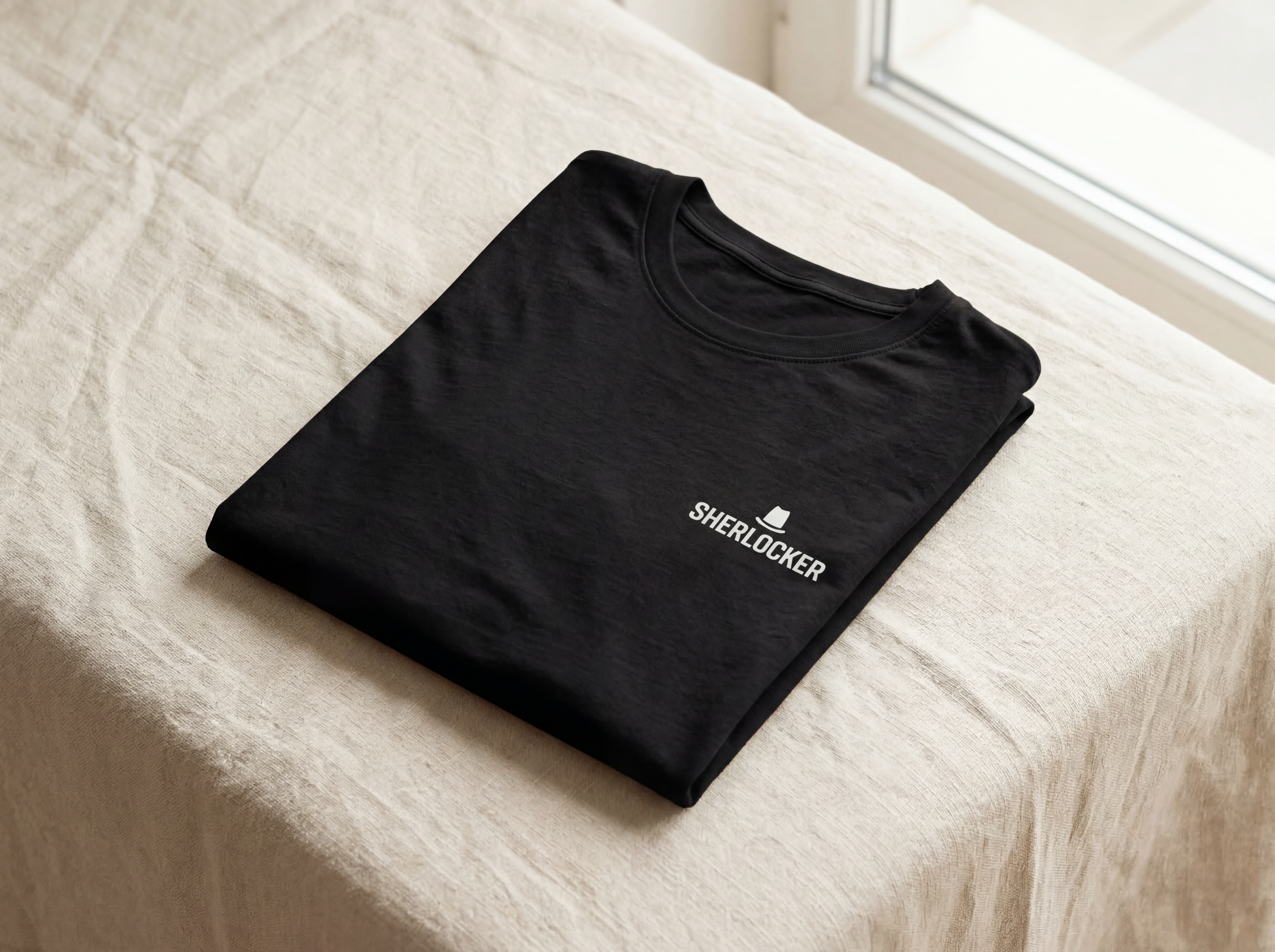 A identidade Sherlocker aplicada em materiais fisicos, ambientes e eventos. Cada peca mantem a consistencia visual: logo sobre superficies escuras, tipografia bold e o gold como acento estrategico.
