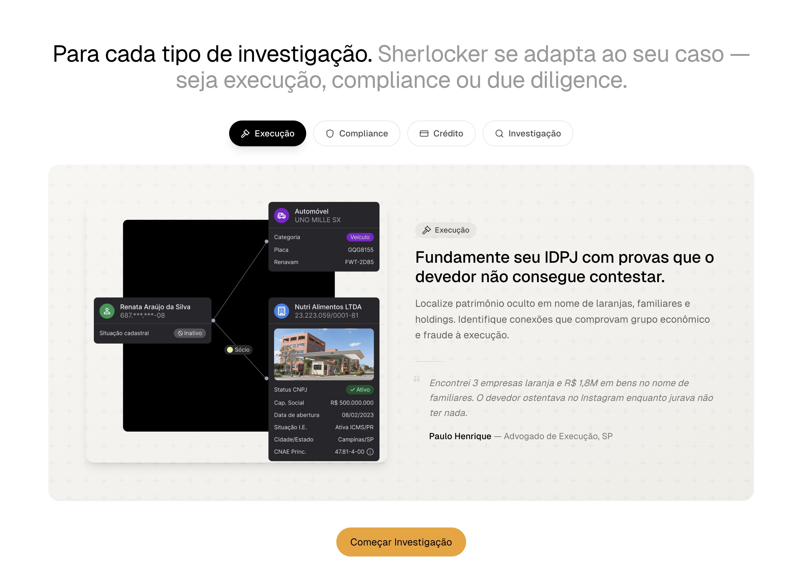 O Sherlocker existe para devolver ao investigador o que o sistema fragmentado brasileiro rouba dele todos os dias: tempo, precisao e confianca.